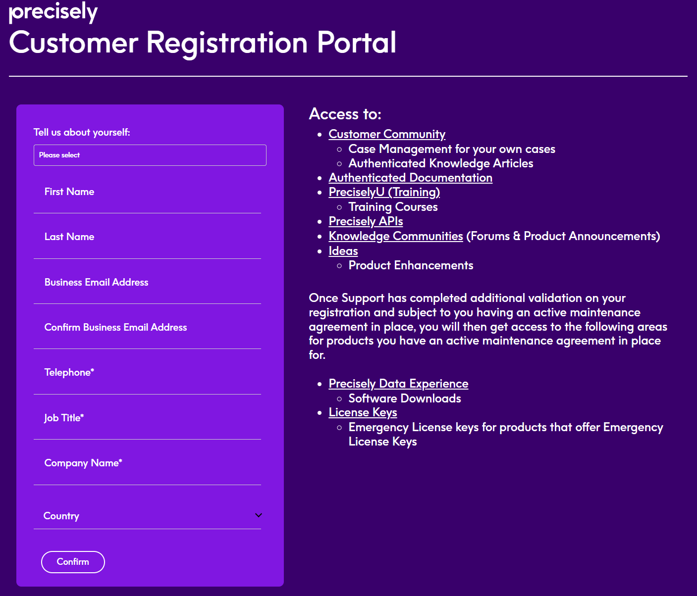 - Precisely Customer Community resources are available to customers with an active Precisely maintenance & subscription agreement.